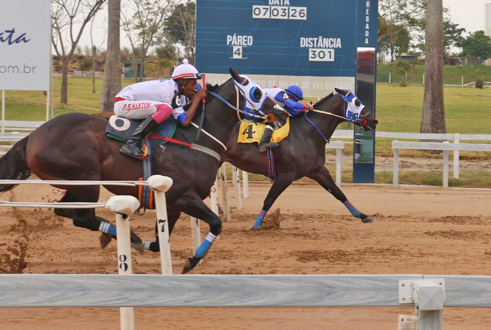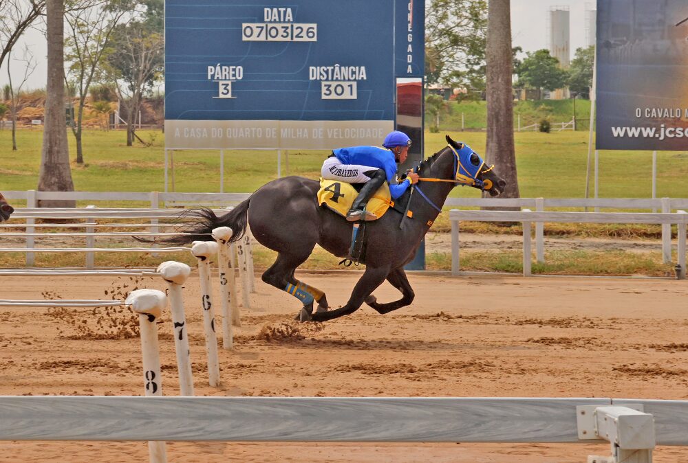 A Diamante Negro LASVEGAS COWGIRL MRL (FLYING COWBOY 123 x WHITE ZOOM, SHAZOOM) foi a mais veloz na tarde do sábado (07/03) e foi a primeira a se classificar para a final do GP Pres. do CHO – I Derby (301m). Pela raia 4 ela saltou na frente de dominou a carreira e cruzou o disco anotando 16,306s (AAA-98) com um corpo e meio de vantagem.